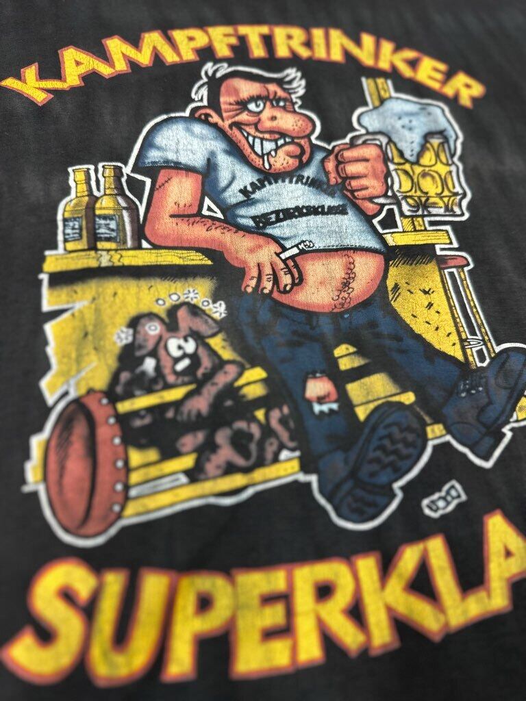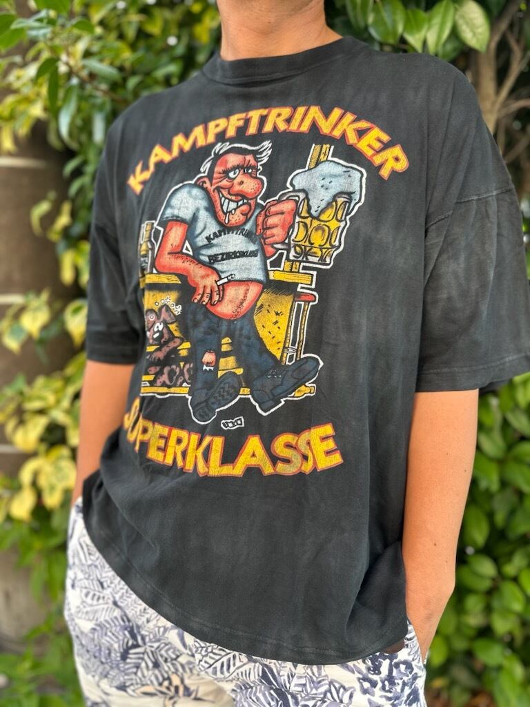 90's KAMPFTRINKER SUPERKLASSE Tシャツのご案内です!後染めで絞り染めを施したこちらのシャツは、大酒飲みのバトルドリンカーにぴったりなアイテムです。