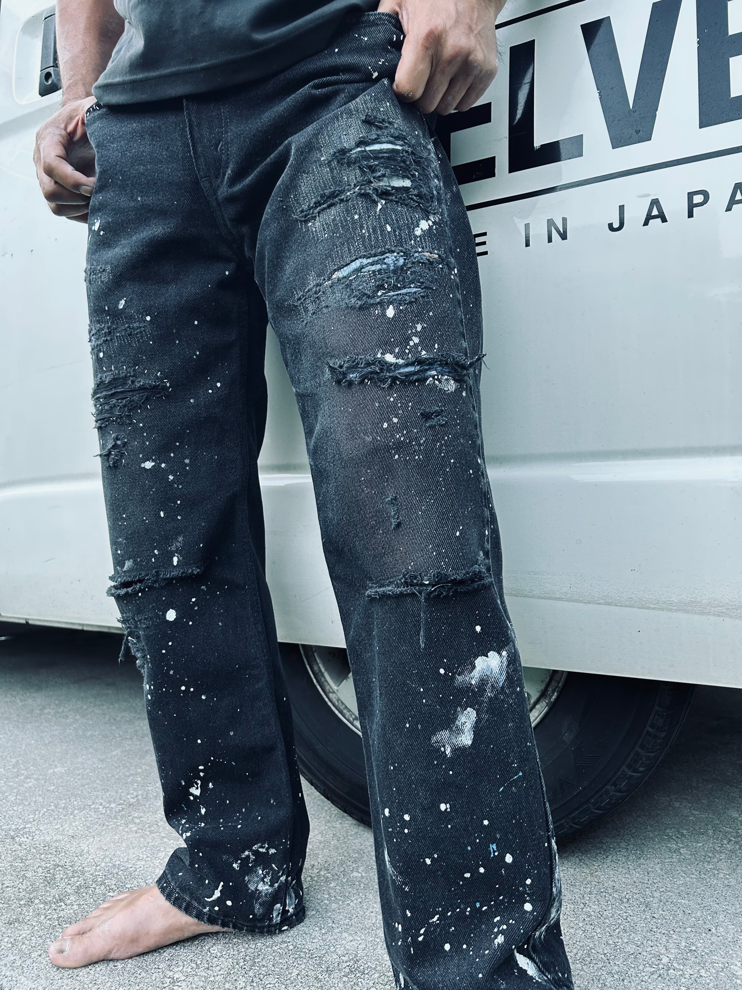ダメージ、ハンドステッチ、ミシン、ペンキ、汚し――
