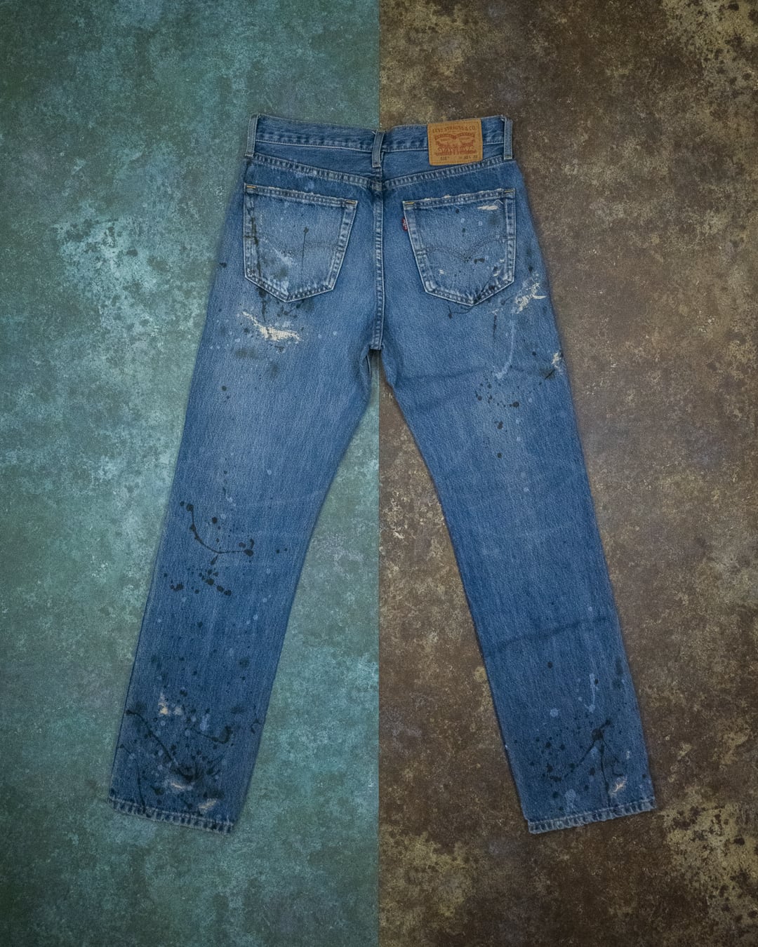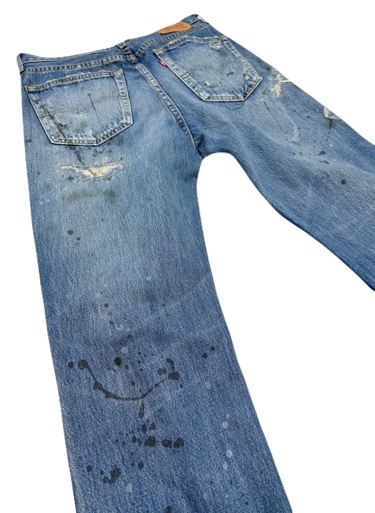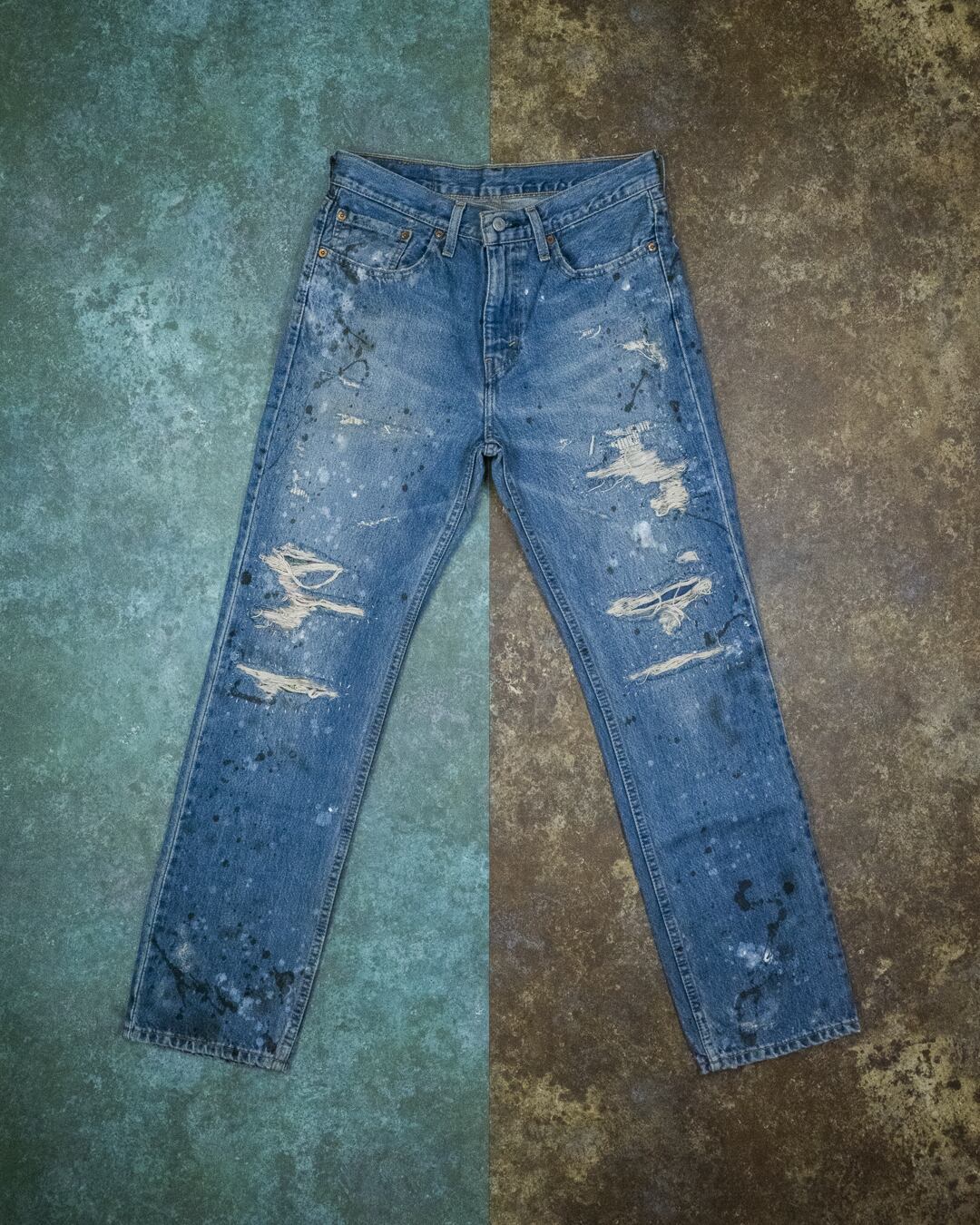 色落ち加工、ダメージ、ハンドステッチ、ミシン、ペンキ、汚し――