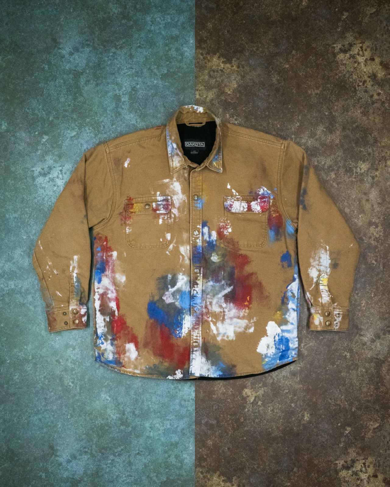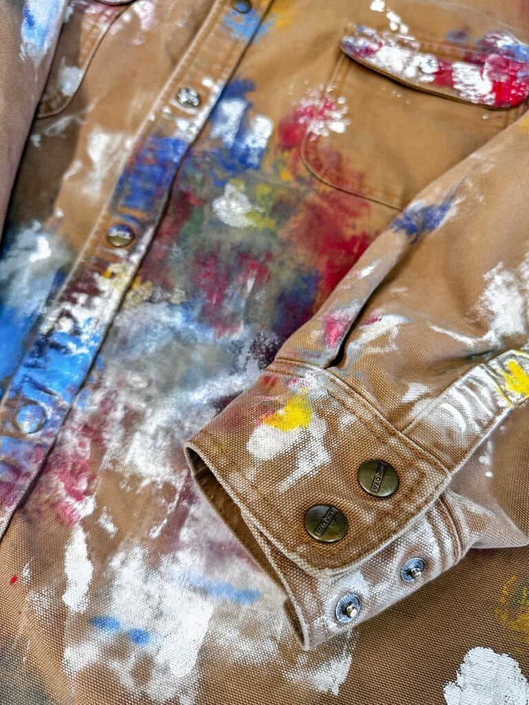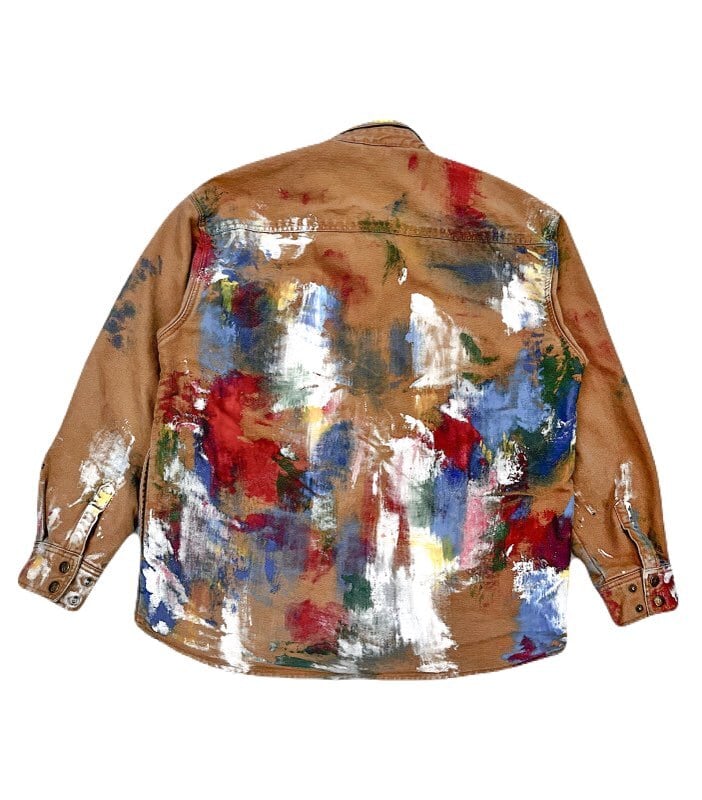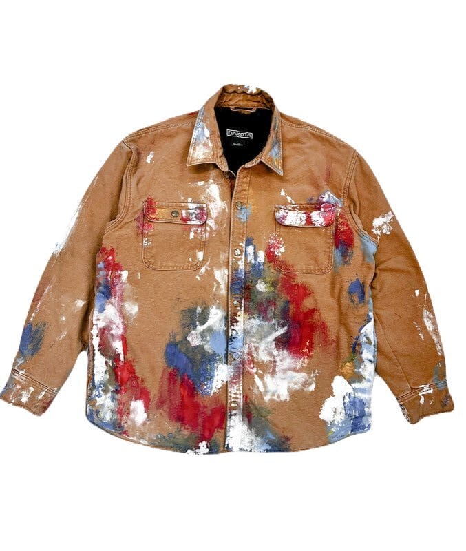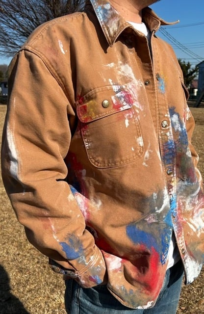 カーハートと並びアメリカのワーク系ブランドとして有名な『DAKOTA』のワークシャツジャケットに、大胆にアートペインティングを施し他にはない特別な一着に仕上げていました。ゆったりとしたシルエットが特徴で、様々なスタイルに馴染みます。