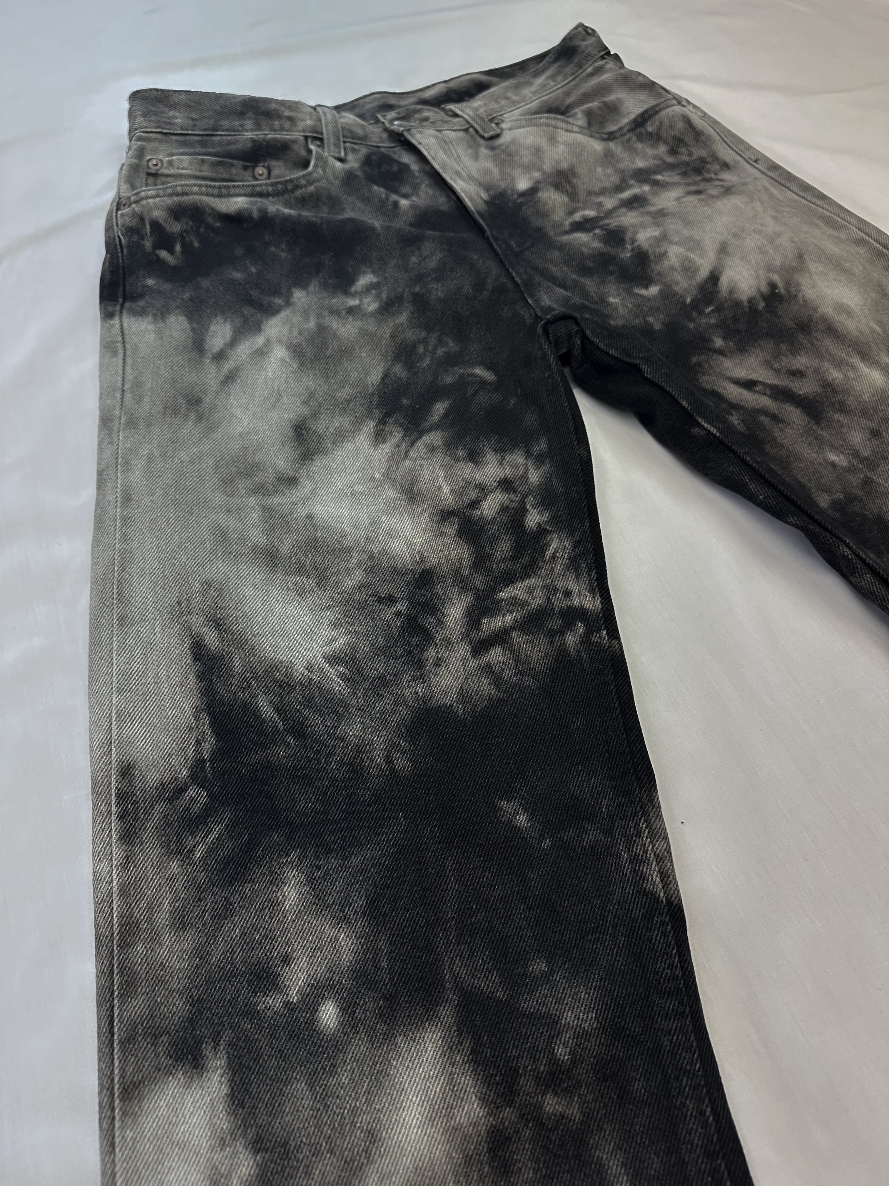 Levi’sのブラックデニムを、独自のブリーチ加工を施した一着!このデニムは、洗練された印象を与えながらも、ややラフな雰囲気を楽しむことができます。ブリーチアウトによるカラーのコントラストが、あなたのスタイルに新たなアクセントを加えます。